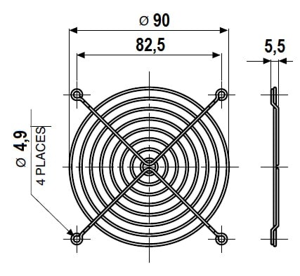 Griglia metallica per ventole, in filo d'acciaio AISI C1010 con finitura nichel-cromo