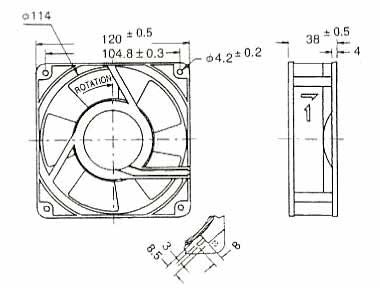 Ventilatore assiale in corrente alternate per motori a poli schermati, bassa velocità, con connessione piatta serie 110 (2,8x0,5 mm). Supporto su cuscinetti a sfera. Controllo digitale PWM della velocità. Per ambienti ad alte temperature
