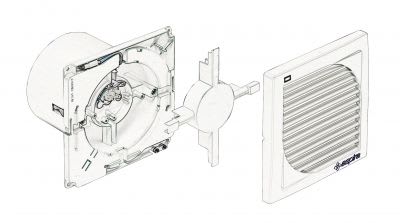 •Costruito in materiale plastico ABS,antiurto e termoresistente. •Motore ad induzione – Classe Is. B – Rpm 2500 con boccole autolubrificanti. •Protezione mediante termofusibile incorporato nel motore. •Sistema di fissaggio a muro ad espansione,senza l’utilizzo di trapano, viti e tasselli. •Lampada di segnalazione del funzionamento.