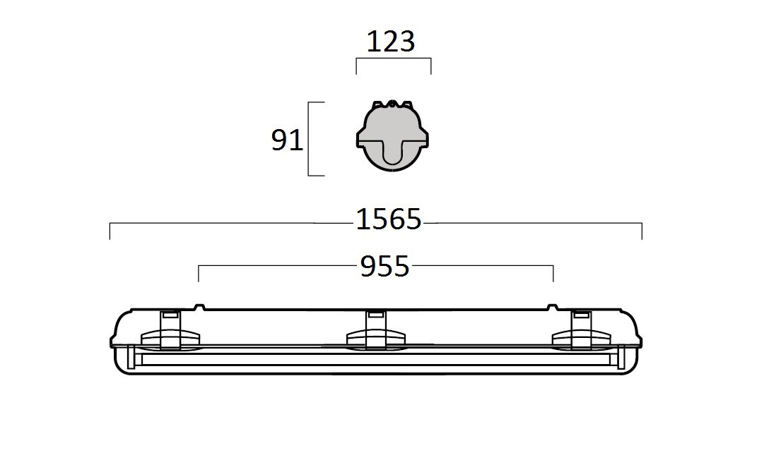 Corpo in policarbonato robusto (IK08). Stabilizzato UV corpo in policarbonato e diffusore. Prismi lineari progettati per ottimizzare il flusso luminoso e per ridurre i riflessi. Staffe di fissaggio in acciaio inox per montaggio a soffitto. Classe energetica: A ++, A +, A. Lunga vita extra con 50,000ore. Lampada: LED 75W 7270Lm 4000K. Corpo stile: doppia.