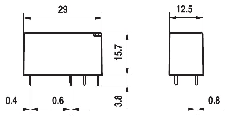 Mini relè. (A): 12 A. N°contatti: 1 Configurazione contatti: CO Materiale contatti: AgNi Collegamento elettrico: collegamento circuito stampato Alimentazione: DC Volt DC: 48 V. non polarizzato monostabile Categoria di protezione: RT II. Accessori: Zoccolo S.93 e S.95.