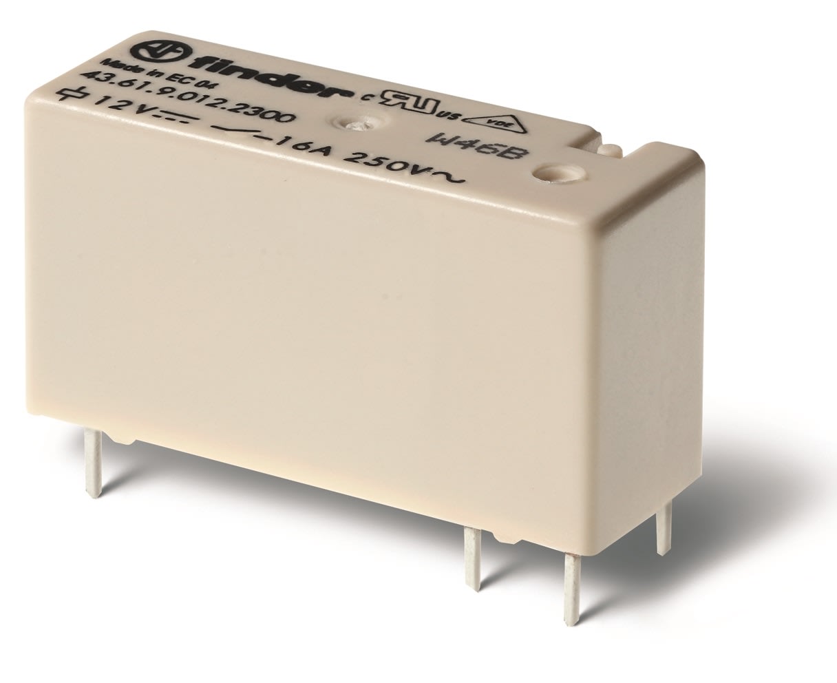 Mini relè. (A): 16 A. N°contatti: 1 Configurazione contatti: NO Materiale contatti: AgSnO2 Collegamento elettrico: collegamento circuito stampato Alimentazione: DC Volt DC: 24 V. non polarizzato monostabile Categoria di protezione: RTII.
