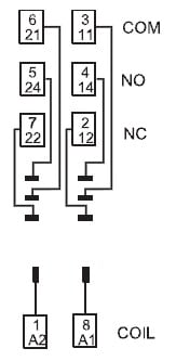 Zoccolo con morsetti a molla Montaggio: barra cieca 35 mm (A): 8 Grado di protezione: IP 20 Accessori: Ponticello plastico o metallico;moduli di segnalazione e protezione EMC;moduli temporizzatori