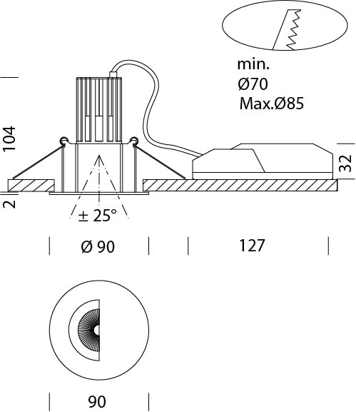 Leuchte mit begrenzter Oberflächentemperatur "D-Zeichen":