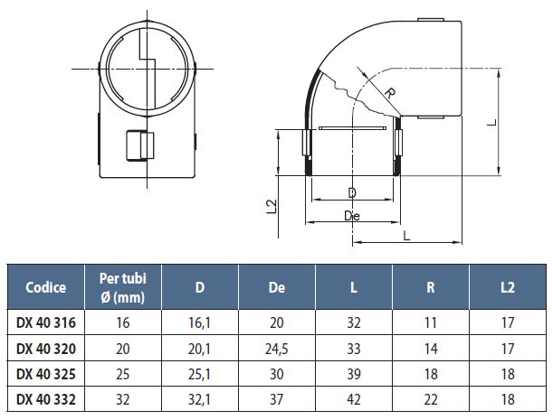 GEWISS - GEWDX40316 CURVA ISPEZIONABILE RK - IP40 - DIAMETRO 16MM - GRIGIO RAL7035 - DX40316