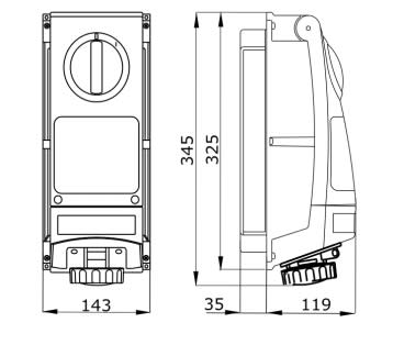 GEWISS - GEWGW66821 PRESA FISSA INTERBLOCCATA VERTICALE - SENZA FONDO - IMPIEGHI GRAVOSI - CON BASE PORTAFUSIBILI - 3P+T 32A 480-500V-50/60HZ 7H - IP66 - GW66821