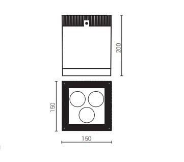 Apparecchio per esterni per installazione a soffitto. Corpo lampada, basetta e cornice fermavetro in alluminio primario anticorrosione a basso tenore di rame. Diffusore in vetro temprato trasparente. Sorgente luminosa a Led, CRI 80. 23,5W. 2800 lm. 38°. 3000K. Colore Bianco