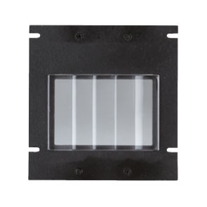 Lente convergente. Vetro in borosilicato purissimo. Asole per regolazione lateraleCompleto di otturatore a saracinesca per accorciare la lama ove richiesto. Telaio nero in acciaio.