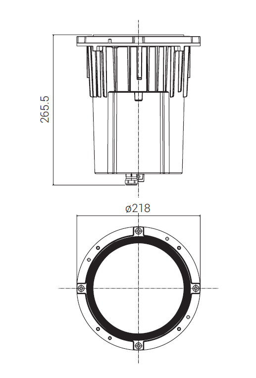 Passum Up Ø 245 - Corpo lampada - Alluminio. LAMPADA LED 29W 4000K 3600lm. 230V/50Hz IP67 IK10 (20 joules). Classe I. Materiale: lega Al primario a basso tenore di rame con verniciatura anticorrosione. Adatto per l’installazione a parete o pavimento. Temperatura sul vetro < 40°C / Carico max 3500 Kg / CRI 80. Insieme cassaforma + corpo lampada + flangia per uso calpestabile + carrabile. Driver 350 mA incorporato. Ottica basculante ±25° / Apertura del fascio disponibile 90°. Altre tonalità di Led a richiesta. Vita: L80B20 60.000 ore con decremento massimo del 20%. D: 218 mm, H: 265.5 mm.