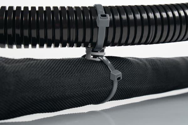 Fascetta di fissaggio 2-piece con accoppiatore. La testa della fascetta può essere riposizionata dopo la legatura. I cavi possono essere facilmente aggiunti anche in fase di post-installazione. Per la legatura in parallelo di due cablaggi che possono essere ruotati fra loro fino a 90°.
