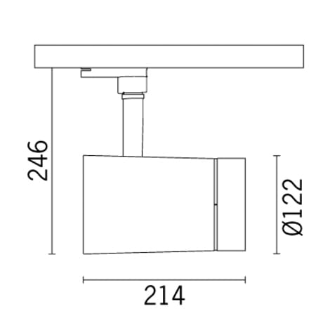 Proiettore orientabile con adattatore per installazione su binario tensione di rete per sorgente LED ad alta resa con emissione monocromatica in tonalità warm White (3000K). Alimentatore elettronico dimmerabile integrato all'interno del prodotto. L’apparecchio è realizzato in pressofusione di alluminio e materiale termoplastico, permette una rotazione di 360° attorno all’asse verticale e un’inclinazione di 90° rispetto al piano orizzontale, è dotato di blocchi meccanici del puntamento, per entrambi movimenti, e si attuano agendo con uno stesso utensile su due viti, una lateralmente all’asta e una sull’adattatore a binario.Dissipazione del calore passiva. Proiettore atto a contenere fino a due accessori piani contemporaneamente . È possibile inoltre l’applicazione di un ulteriore componente esterno a scelta tra alette direzionali e schermo antiabbagliamento. Tutti gli accessori esterni sono ruotabili di 360° rispetto all’asse longitudinale del proiettore. Colore: Bianco.