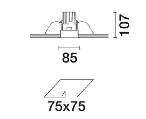 Apparecchio ad incasso ad ottica fissa per sorgente LED warm white ad elevato indice di resa cromatica. Sistema passivo di dispersione termica. Corpo lampada con superficie radiante in alluminio pressofuso, versione con cornice perimetrale di battuta. Ottica ad alta definizione in termoplastico metallizzato, integrata in posizione arretrata nello schermo antiabbagliamento. Vetro di protezione per sorgente LED. La composizione strutturale del sistema ottico permette di ottenere un'emissione a luminanza controllata (UGR < 19). Alimentatore dimmerabile DALI fornito in dotazione collegato all'apparecchio. Ad incasso con molle in filo di acciaio per controsoffitti da 1 a 30 mm - asola di preparazione 75 x 75. Installazione consentita in posizione orizzontale o verticale. Su box alimentatori con connessioni ad innesto rapido. Il cablaggio elettronico digitale permette la dimmerazione con protocollo DALI o con interruttore a pulsante (SWITCH DIM). LED 9W, 750lm. Efficienza luminosa (lm/W): 51. Warm 3000K CRI90.Ottica: F - Flood 30°. Orientabilità: fisso.