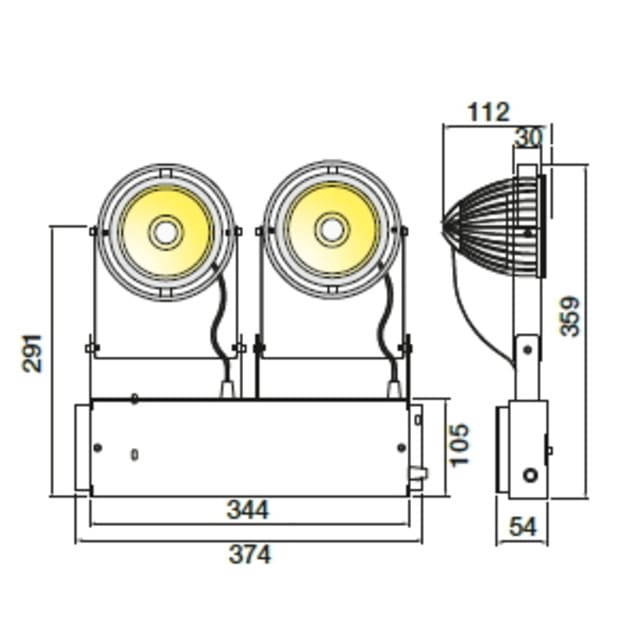 4532 Orion. Installazione a soffitto/parete orientabile: 345° inclinabile: 60°. Corpo: Corpo e staffe in acciaio verniciato. Ottica: Ghiera in alluminio pressofuso. Colore: Bianco. Alimentatore incluso. Lampada: LED 2X17W 4400Lm 3000K 40°.