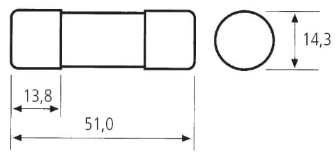 Corpo in steatite adatto a sopportare sbalzi termici molto elevati, riempito di sabbia di quarzo. L’elemento di fusione è composto da una lamina di rame ricoperta in argento. La doppia capsula ricoperta d’argento evita l’ossidazione e mantiene le caratteristiche immutate nel tempo. Tutti i fusibili cilindrici sono progettati per ridurre al minimo la potenza dissipata il cui valore è indicato sul corpo del fusibile stesso. Fusibili SCH con indicatore di fusione. Grandezza:SCH14,
