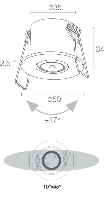 Apparecchi da incasso a LED ideali per illuminazione di accento e di effetto. Eyes 3.0 possono essere realizzati in differenti finiture, temperature colore ed ottiche, con l’obiettivo di farne la soluzione più adatta per ogni tipo di ambiente. La vasta potenzialità d'uso di questi incassi e specialmente l'utilizzo del LED, favorisce nuove idee applicative in ambienti domestici, alberghieri e commerciali, lasciando al progettista un'ampia libertà nell'illuminazione generale, puntuale e scenografica. 10°+45°. 3000 K. Colore Cromo. 2W. 103lm