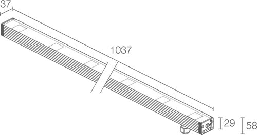 Profilo lineare da esterno; su superficie (soffitto, parete, pavimento) con staffe, a incasso (soffitto, parete, pavimento) con cassaforma; 30W. 1363 lm. RGB. 32°. L=1037 mm
