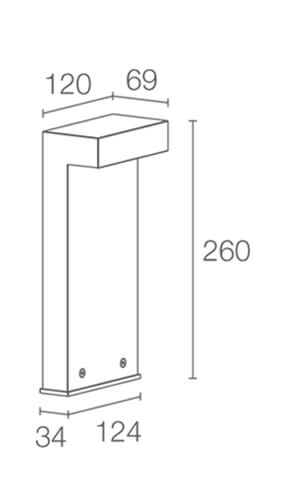 Paletto da esterno; su superficie (pavimento); corpo in alluminio lega EN AW 6026, schermo in vetro. 12W. 3000 K. Diffuso. Grigio. A=260 mm