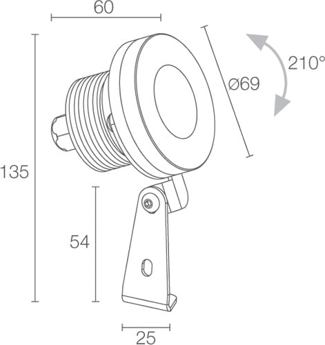 Proiettore da esterno (non adatto per immersione); su superficie (soffitto, parete, pavimento, picchetto); corpo e ghiera in acciaio inox AISI 316L; schermo in vetro trasparente temprato. 6W. 436lm. 24VDC. 4000 K. 10°