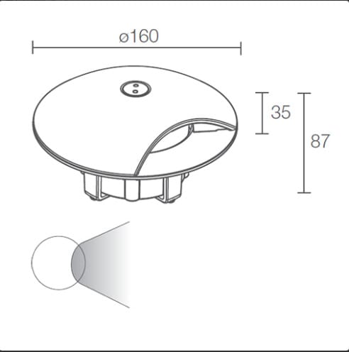 Rondò 3.1 - Incasso da esterno monoemissione; carrabile fino a 2000 kg; a incasso (pavimento); corpo in acciaio inox AISI 316L, schermo in policarbonato; finiture: antracite; 1 power LED; 3W - 230Vac;alimentatore integrato; incluso cavo in neoprene di 1,5 m H05RN-F 3x1,0 Ø7 mm, ottiche: radiale; colore LED: bianco - 4000K; grado di protezione: IP67; grado di resistenza: IK08; dotato di sistema IPS; temperatura di esercizio: -20°C+45°C; temperatura schermo: max 40°C (Ta 25°C); sicurezza fotobiologica: gruppo rischio 1 secondo EN62471:2006; classe di isolamento I; peso 1,80 kg; dimensioni Ø160x87 mm; accessori: cassaforma WC0601, cassaforma WC0701, chiave per vite antivandalo WE0100. LED 3W 4000K - Radiale.