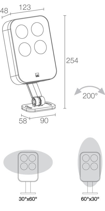Proiettore da esterno; su superficie (soffitto, parete, pavimento, picchetto); corpo in alluminio pressofuso lega EN AB 47100, schermo in vetro extrachiaro temprato e serigrafato.RGBW. 20W. 1059 lm. 58°. Grigio