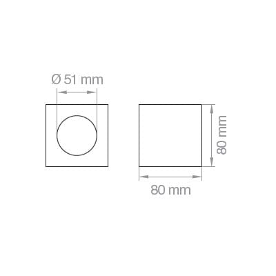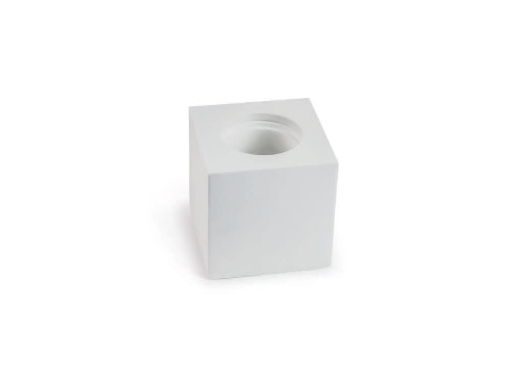 FARETTO IN GESSO SUPERFICIE QUADRATO - Cubetto da superficie in gesso H 80 mm, con attacco a scomparsa tra soffitto e corpo illuminante. Portalampade GU10 incluso. Lampada non incluso. IP20. Classe II. Max 1x50W GU10 230V. Colore: Bianco.