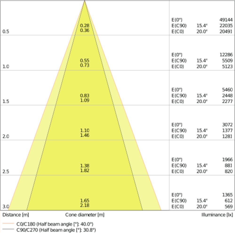 • Ausstrahlungswinkel - mediumstrahlend 21-40°