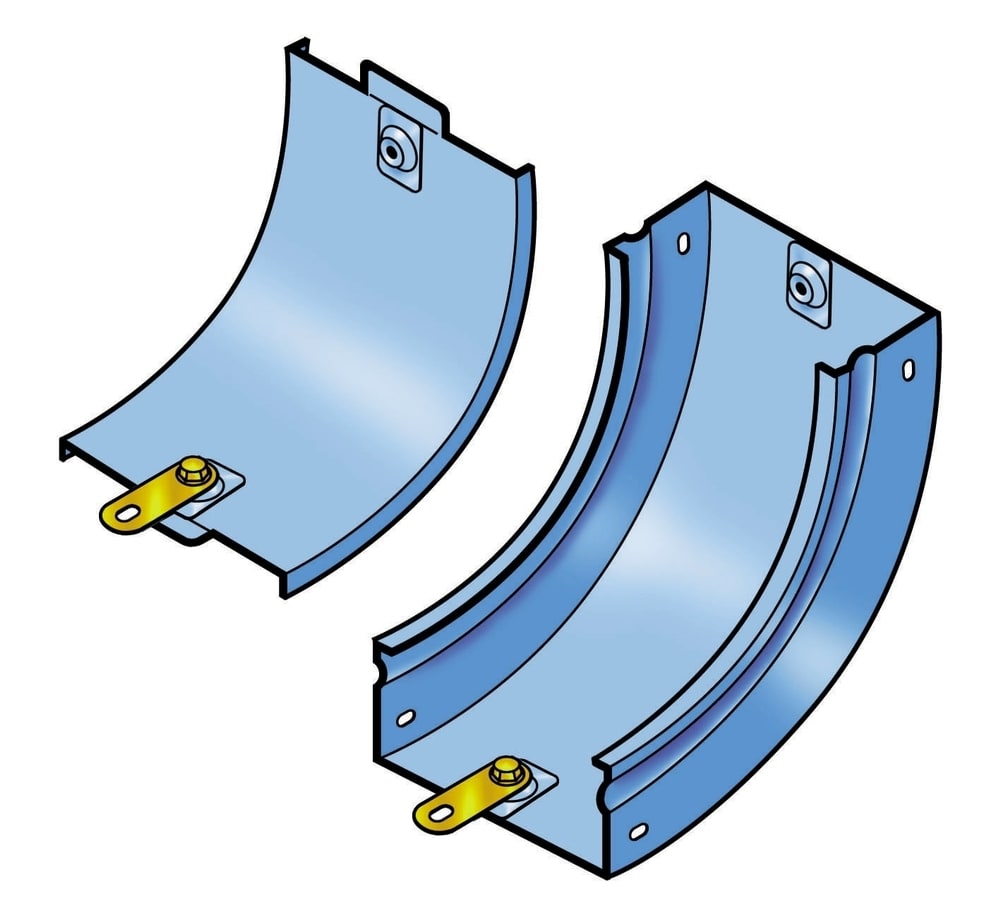 Curva in salita a 90 completa di coperchio. Altezza: 50 mm. Larghezza: 50 mm. Finitura C: Acciaio zincato a caldo dopo lavorazione.