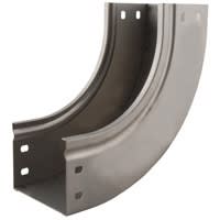 Curva in salita a 90 completa di coperchio. Altezza: 75 mm. Larghezza: 300 mm. Finitura Z: Acciaio zincato sendzimir.