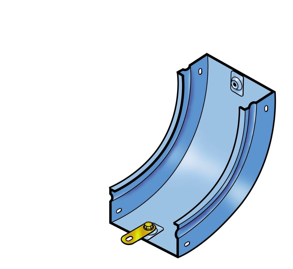 Curva in salita a 90 solo base. Altezza: 50 mm. Larghezza: 50 mm. Finitura Z: Acciaio zincato sendzimir