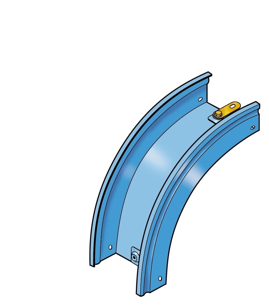 Curva in discesa a 90 solo base. Altezza: 50 mm. Larghezza: 50 mm. Finitura Z: Acciaio zincato sendzimir