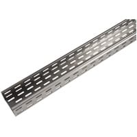 Base rettilinea forata imbutita. Altezza 75 mm. Larghezza 600 mm. Lunghezza 3 m. Finitura Z: Acciaio zincato sendzimir