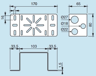Supporto scatola/guaina universale. Finitura 316L: acciaio inox AISI 316L. Supporto per il montaggio di scatole di derivazione e raccordi per la derivazione con guaine.