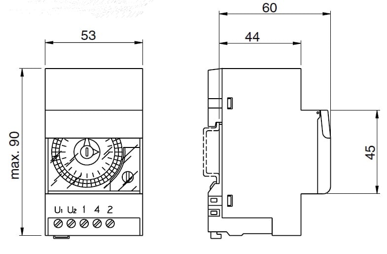 MicroRex QW31 interruttore orario analogico settimanale - quadrante 7 giorni - 3 moduli DIN35 - 1 canale - 1NO/NC - passo di commutazione 2 ore