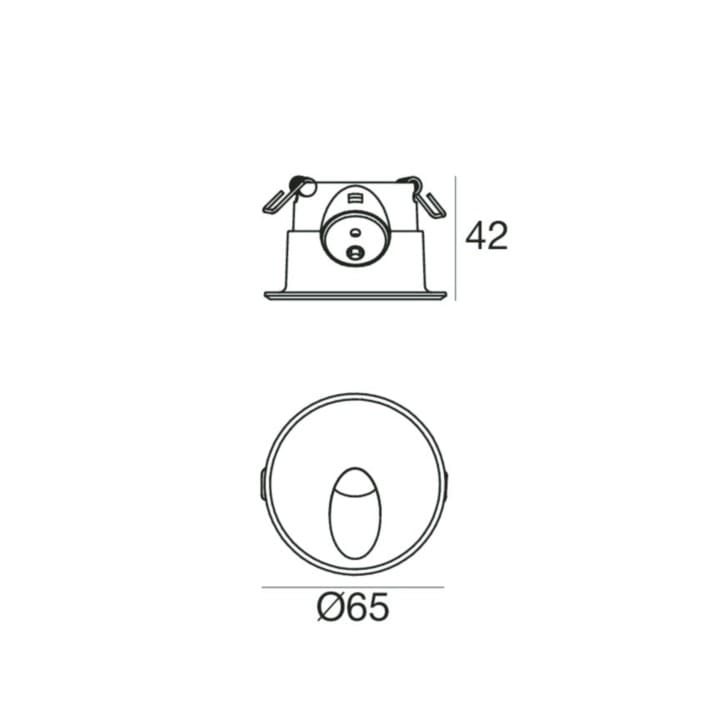 Lampada a parete a singola emissione per applicazione indoor. La sorgente luminosa LED, di colore bianco caldo, con distribuzione luminosa Wide Flood, è composta da 1 LED powerled, con una CCT 3000 K ed un CRI 80; il flusso luminoso della sorgente è di 233 lm, con un'efficienza nominale di 116.5 lm/W.