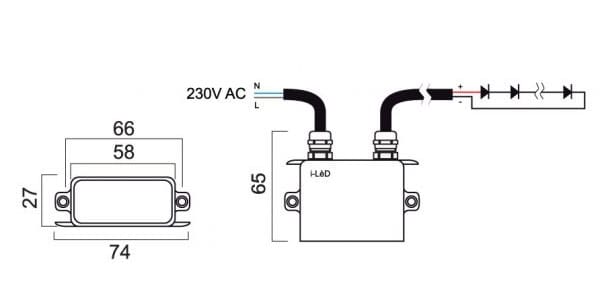 LINEA LIGHT (ILED) modello ALIM SCA 6W 3-6 LED 350MA IP67, alimentatore o driver LED per illuminazione