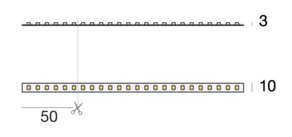 Led strip a singola emissione per applicazione indoor. La sorgente luminosa LED, di colore bianco caldo, con distribuzione luminosa Extra Wide Flood, presenta un'emissione, è composta da 600 LED stripled, con una CCT 3000 K ed un CRI 80; il flusso luminoso della sorgente è di 3600 lm, con un'efficienza nominale di 75.0 lm/W.