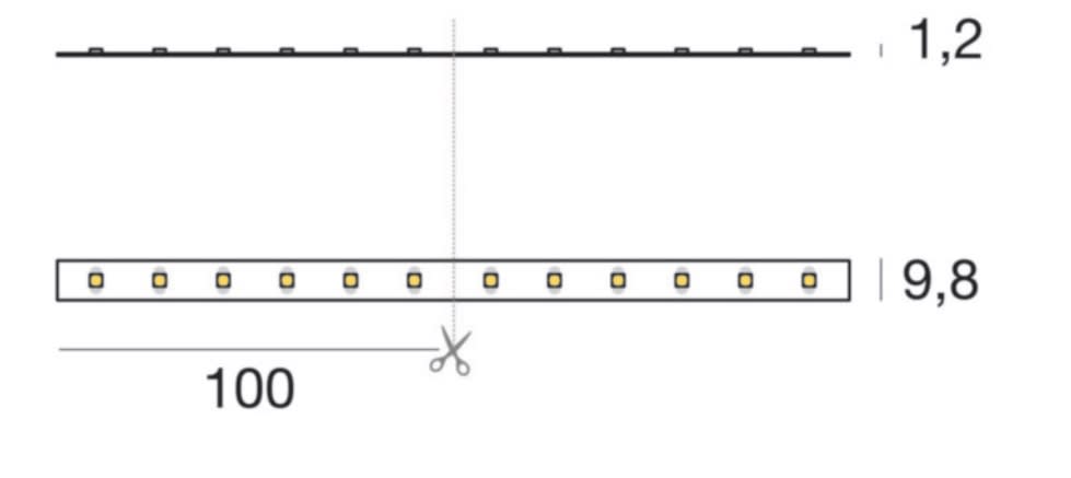 Led strip a singola emissione per applicazione indoor. La sorgente luminosa LED, di colore bianco naturale, con distribuzione luminosa General Lighting, è composta da 350 LED topled, con una CCT 4000 K ed un CRI 85; il flusso luminoso della sorgente èdi 8550 lm, con un'efficienza nominale di 135.7 lm/W.