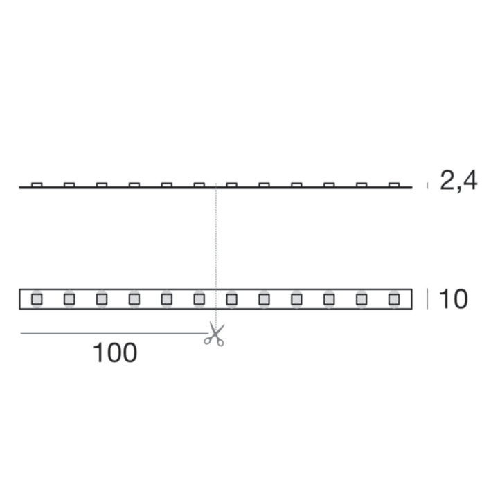 Led strip a singola emissione per applicazione indoor. La sorgente luminosa LED, di colore bianco naturale, con distribuzione luminosa Extra Wide Flood, presenta un'emissione, è composta da 300 LED topled, con una CCT 4000 K ed un CRI 80; il flusso luminoso della sorgente è di 6119 lm, con un'efficienza nominale di 102.0 lm/W.