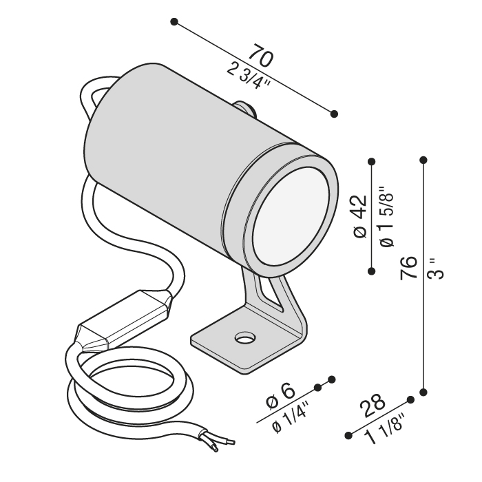 Adatto per installazioni a parete e controsoffittature in cartongesso, anche per uso esterno. Idoneo per incassi da terra ad uso calpestabile, carico max 500 kg, fissaggio mediante armatura da incasso fornita a parte. Prodotto finalizzato all’impiego di sorgenti luminose a LED per luce di accento e segnalazione. Corpo e ghiere in acciaio AISI316L. Diffusore in vetro temprato. Guarnizioni in silicone. 1.5 m di cavo di alimentazione H05RN-F pre-cablato e bloccato tramite pressacavo in Ottone Nichelato. La molla di ritenuta si adatta sia per applicazioni che prevedono l'utilizzo di armatura da incasso che direttamente in controsoffittature in cartongesso. Dimmerazione disponibile. Bulloneria in acciaio inox A4 o AISI 316L. Versione in tensione 12/24 V: Tutti i cavi sono provvisti di una speciale guaina che protegge il faretto dalle infiltrazioni di acqua e umidità. Versione orientabile. Picchetto non incluso,possibile scelta di 3 differenti ottiche. Temperatura massima rilevata sul vetro 65°C. Tipo lampada:1 LED - 24 V 650lm-5% 3000K - 6,5W. Versione a led senza alimentatore. Ottica: 24°.