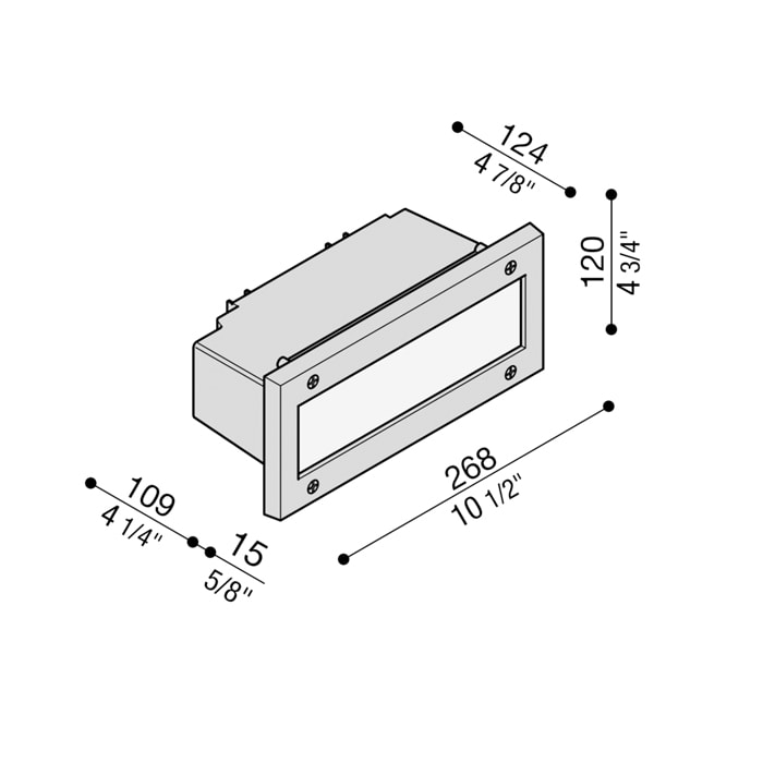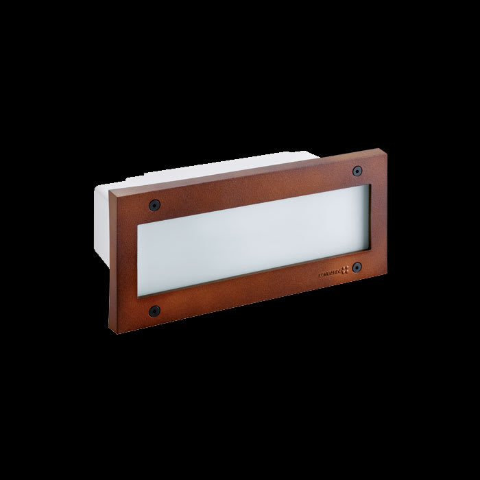 Adatto anche ad uso esterno. Base in policarbonato e diffusore in vetro temprato. Riflettore in alluminio tipo L2–1060. Guarnizioni in silicone. Doppio pressacavo PG 13 + tappo di chiusura per singola alimentazione. Viti imperdibili in acciaio inox A4 a testa esagonale ch.3.LED natural white. Alimentazione diretta 220-240V. Nessun rischio fotobiologico, RG0 gruppo di rischio esente (EN62471). Colore: Corten. Tipo lampada: 24 LED 600 lm 4W real output lm 193 . Versione a led con alimentatore integrato.
