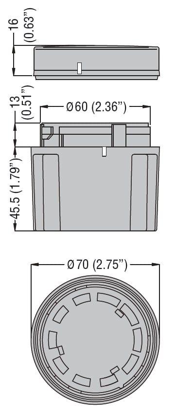 MODULI DI CABLAGGIO E COPERCHIO (INGRESSO LATO INFERIORE). Ø70MM, PER TUBI PLASTICI, COLORE GRIGIO.