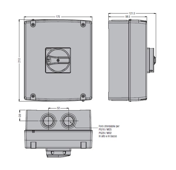 INTERRUTTORE SEZIONATORE IN CONTENITORE ISOLANTE PLASTICO TIPO IEC/EN IP65, QUADRIPOLARI. CON MANIGLIA GIALLO/ROSSA, 100A