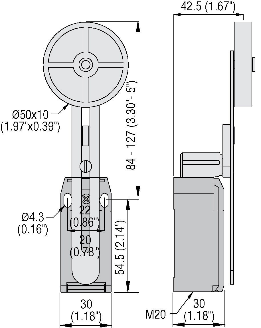Ausführung des Betätigungselements - Rollenhebel verstellbar