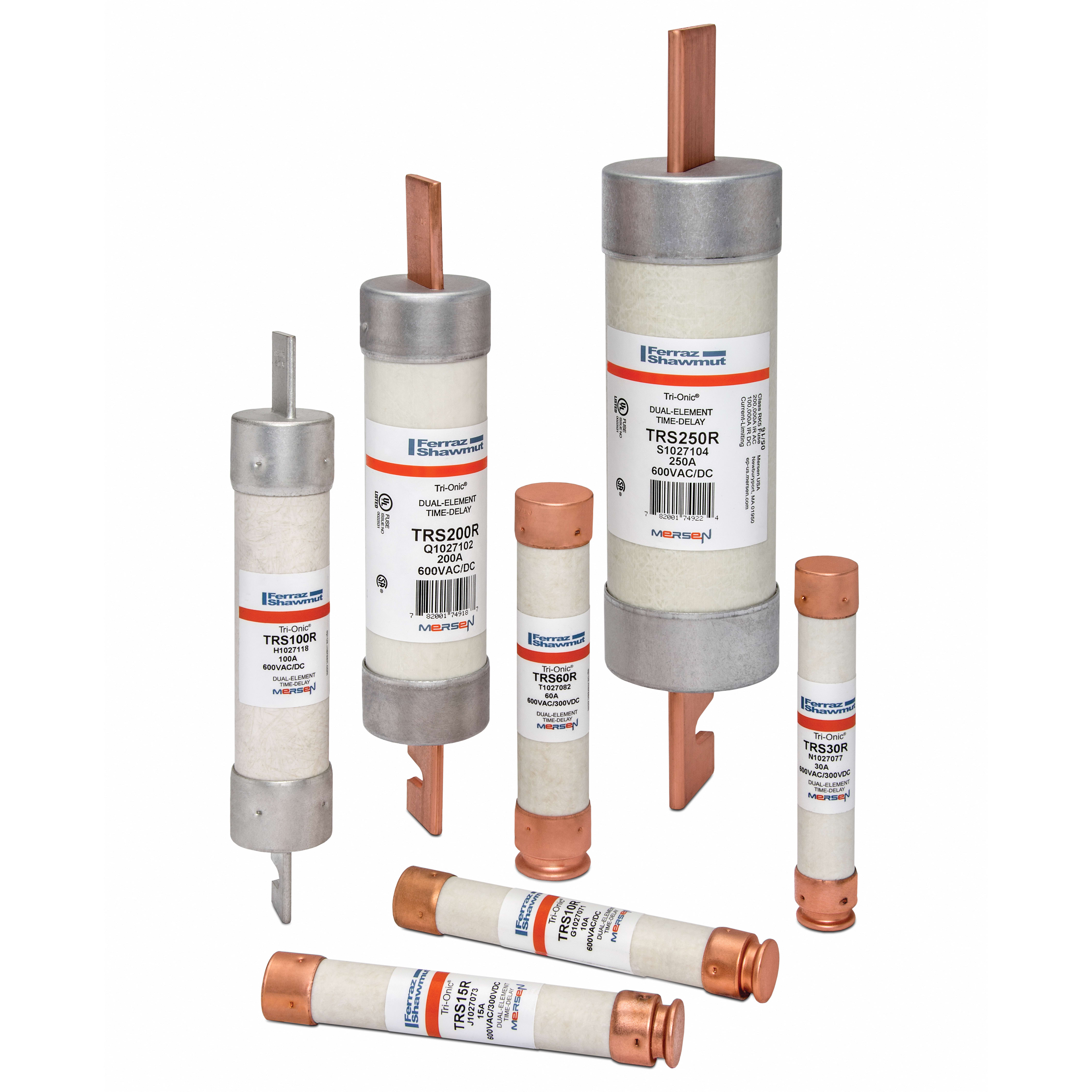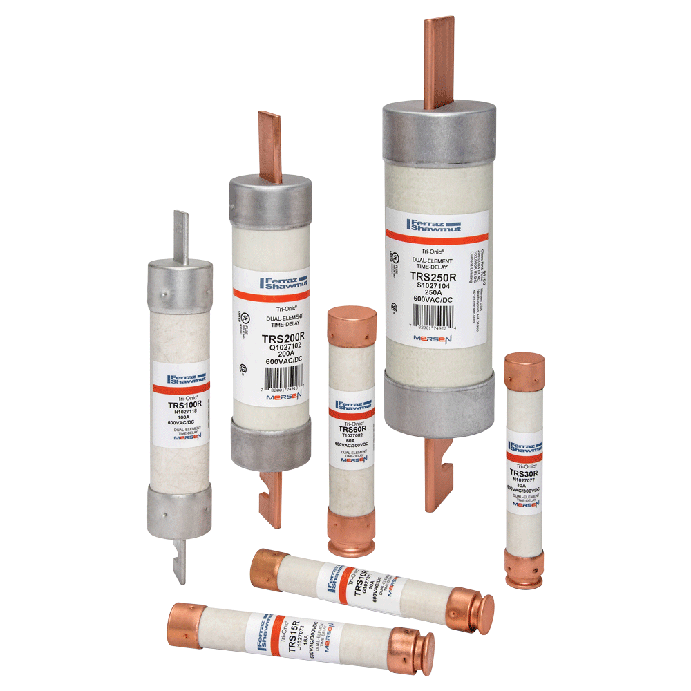 I fusibili ritardati a limitazione di corrente Tri-Onic TRS-R sono progettati per proteggere motori, trasformatori, apparecchiature di servizio, alimentatori e circuiti derivati dai sovraccarichi di corrente. Le caratteristiche di temporizzazione dei fusibili TRS-R gestiscono in tutta sicurezza le normali correnti di spunto e di avviamento associate ai moderni motori e trasformatori.