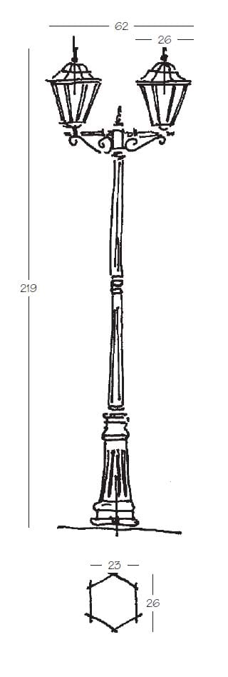 NOBILE ILLUMINAZIONE - NOB2002/09/NE LAMPIONE DUE LUCI ESAGONALE MEDIA NE - 2002/09/NE
