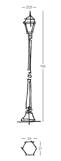 Pressofusione di alluminio. Diffusore: Glass Satinato, Trasparente (versione standard). Specifiche elettriche: 23W E27, 100W E27.