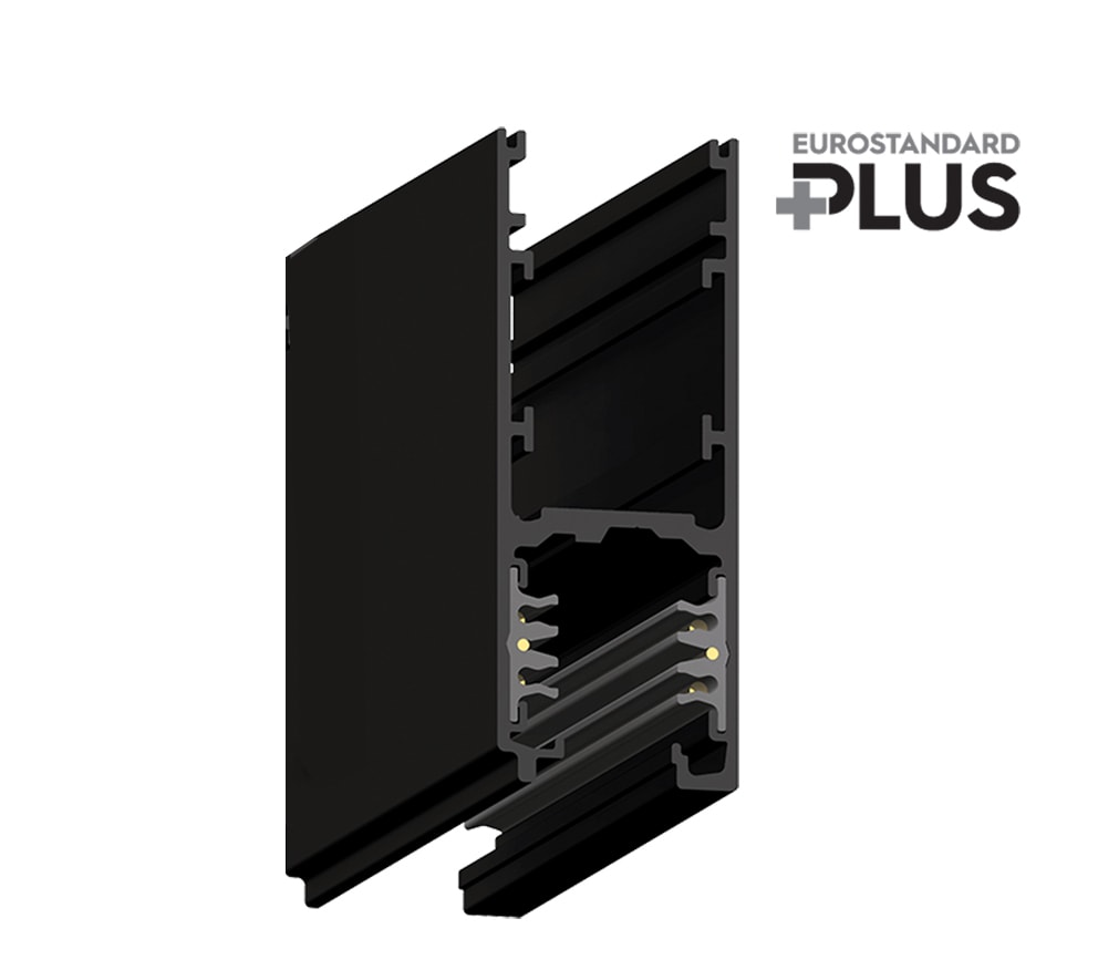 S1H - BINARIO AD H DALI + trifase a sospensione di 1m - Binario elettrificato trifase (tensione di rete 230/250V - 16A) a 6 conduttori: 4 per modalità trifase, 2 per la gestione di un qualsiasi segnale (es. dali, dmx, lon, eib, ecc). Lunghezza 1m. Il sistema formato da n. 3 conduttori di fase + neutro permette di ottenere n.3 circuiti distinti per n.3 accensioni separate. Rete trifase: carico complessivo di 16A (10500VA), DALI 2X1A (100VA). Rete monofase: carico massimo di 16A (3500VA), DALI 2x1A. Possibilità di utilizzare lo spazio superiore per l'installazione di una strip LED per l'illuminazione indiretta. Accessori da ordinare separatamente. Normativa: EN 60570. Colore: nero.