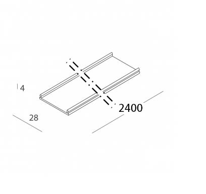 Schermo diffusore ad incastro a filo L=2400mm. Policarbonato opale. La dilatazione termica dello schermo ad apparecchio acceso è pari a 1mm per metro lineare.
