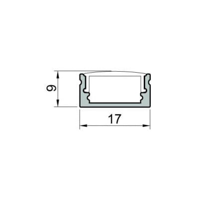 Profiled kit H9. Profilo dissipante di lunghezza 2 metri, schermo trasparente ad inserimento a scatto, testate di chiusura e n°4 staffe di fissaggio inclusi. Strip LED e alimentatore 24Vdc da ordinare a parte. Colore: 96 alluminio anodizzato.