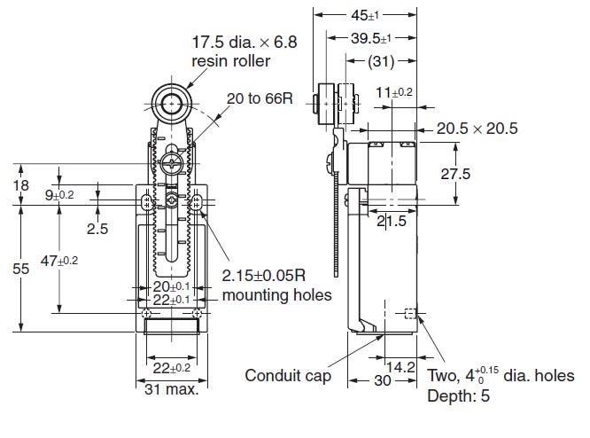 Ausführung des Betätigungselements - Rollenhebel verstellbar